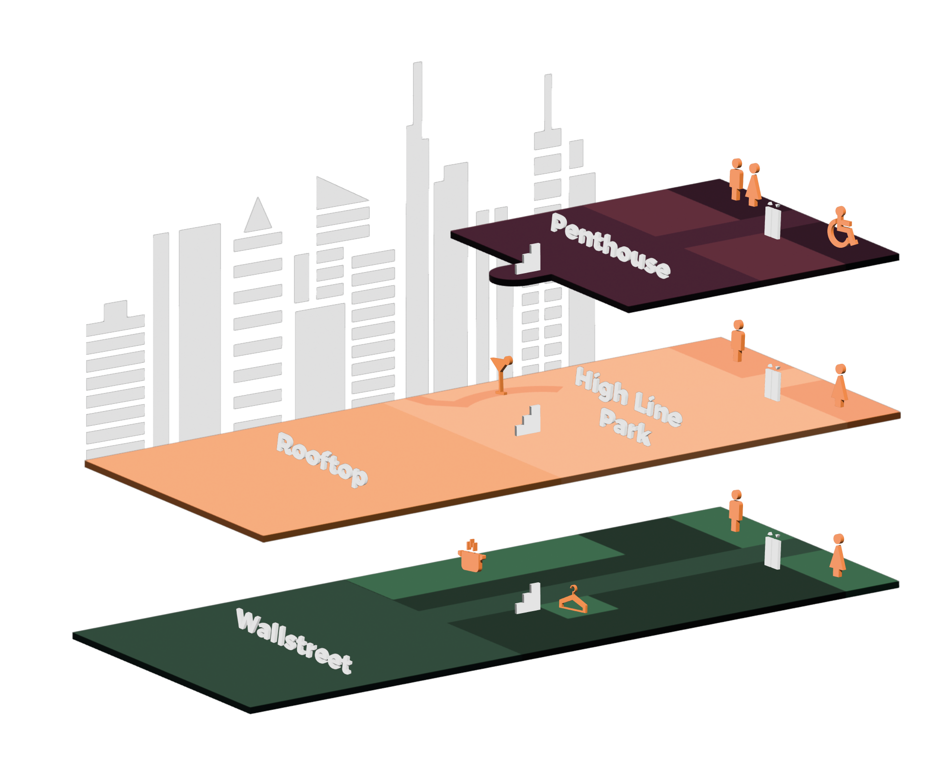Unsere drei Floors bieten für jedes Veranstaltungsformat die perfekte Lösung – Tagung oder Gala Dinner in der Wallstreet kombiniert mit Empfang und Ausklang in Highline, Penthouse und Rooftop Terrasse; von drinnen wie draußen immer inklusive Skyline Blick.
